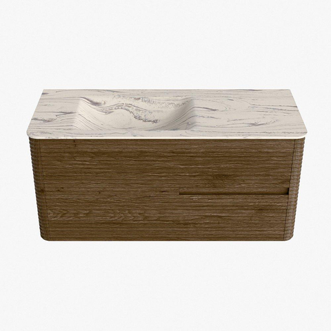 Mondiaz CIRO-DLUX Badkamermeubelset - 110x45x50cm - Solid surface wastafel Nata - 1 wasbak Links - zonder kraangaten - 2 lades - Dusk