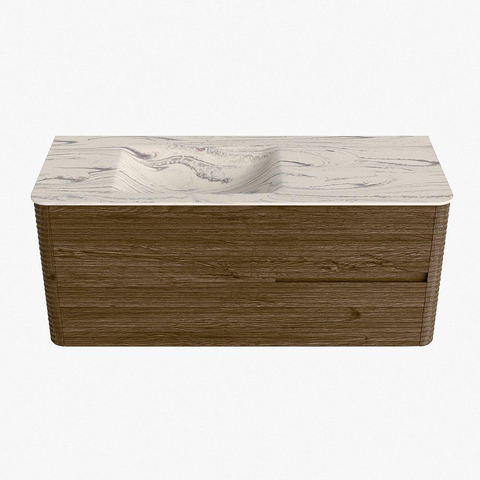 Mondiaz CIRO-DLUX Badkamermeubelset - 120x45x50cm - Solid surface wastafel Nata - 1 wasbak Links - zonder kraangaten - 2 lades - Dusk