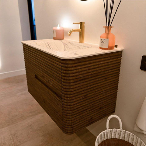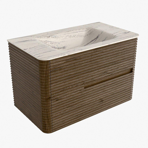 Mondiaz CIRO-DLUX Badkamermeubelset - 80x45x50cm - Solid surface wastafel Nata - 1 wasbak Midden - 1 kraangat - 2 lades - Dusk