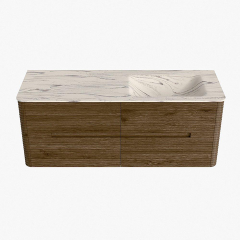 Mondiaz CIRO-DLUX Badkamermeubelset - 130x45x50cm - Solid surface wastafel Nata - 1 wasbak Rechts - 1 kraangat - 4 lades - Dusk