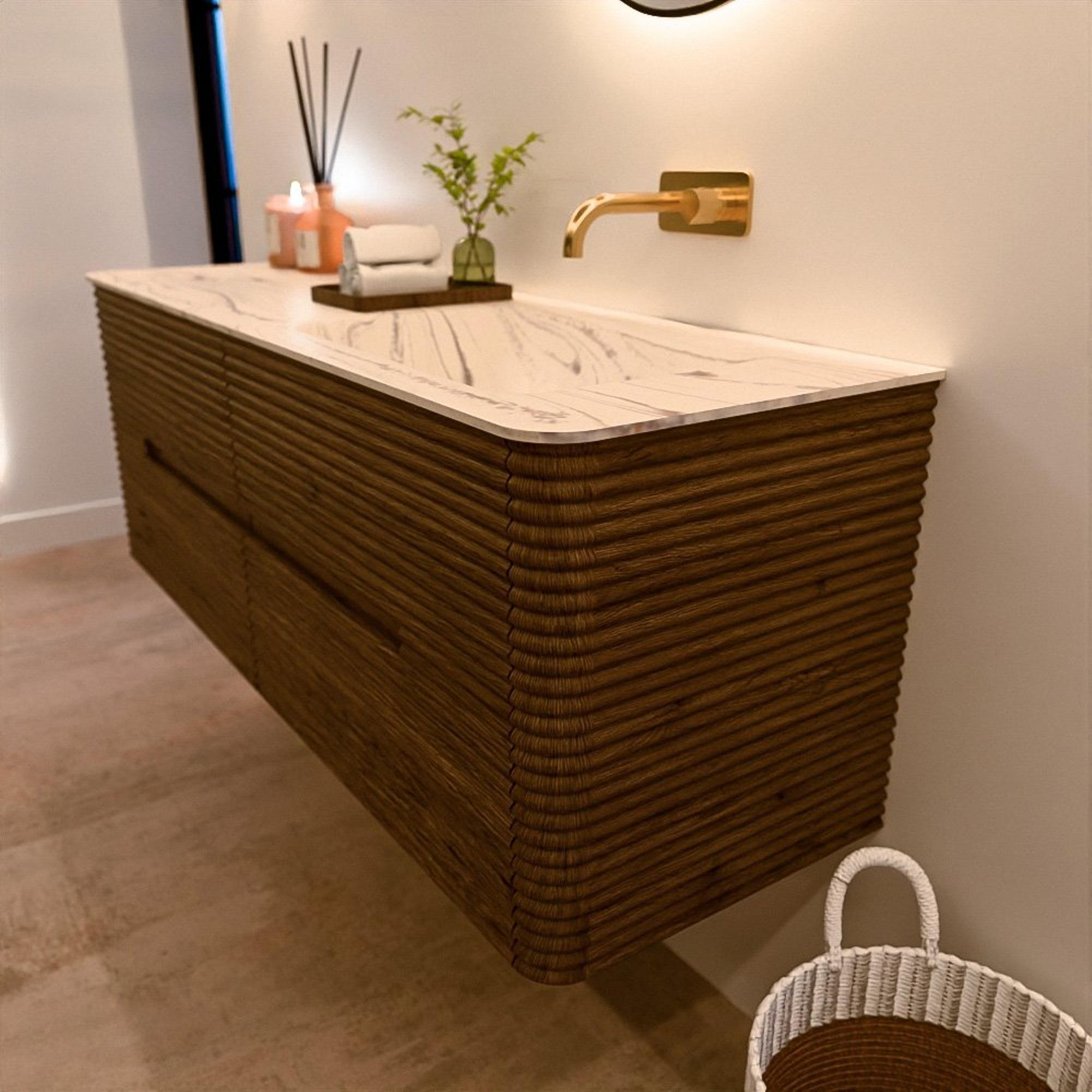 Het CIRO-DLUX badkamermeubel is ontwikkeld voor wie kiest voor modern design, natuurlijke materialen en hoogwaardige functionaliteit. Met maatvoeringen van 70 cm tot 190 cm past de CIRO-serie moeiteloos in zowel compacte badkamers als royale designruimtes. Elk meubel is een uitgebalanceerde combinatie van esthetiek, ambacht en duurzame kwaliteit.