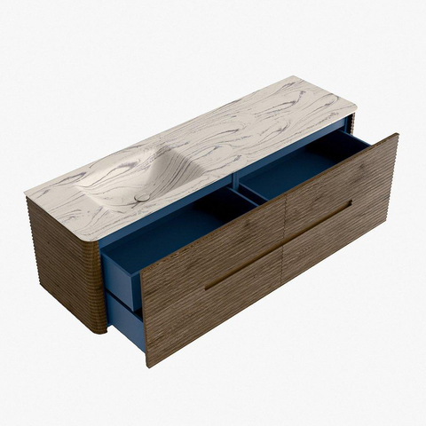 Functioneel gemak is een essentieel onderdeel van de CIRO-serie. Het meubel beschikt over een royale lade met extra binnen lade, ideaal voor het overzichtelijk opbergen van alle dagelijkse badkamerartikelen. Dankzij de geïntegreerde greep en het soft close-mechanisme blijft het front rustig, strak en elegant.