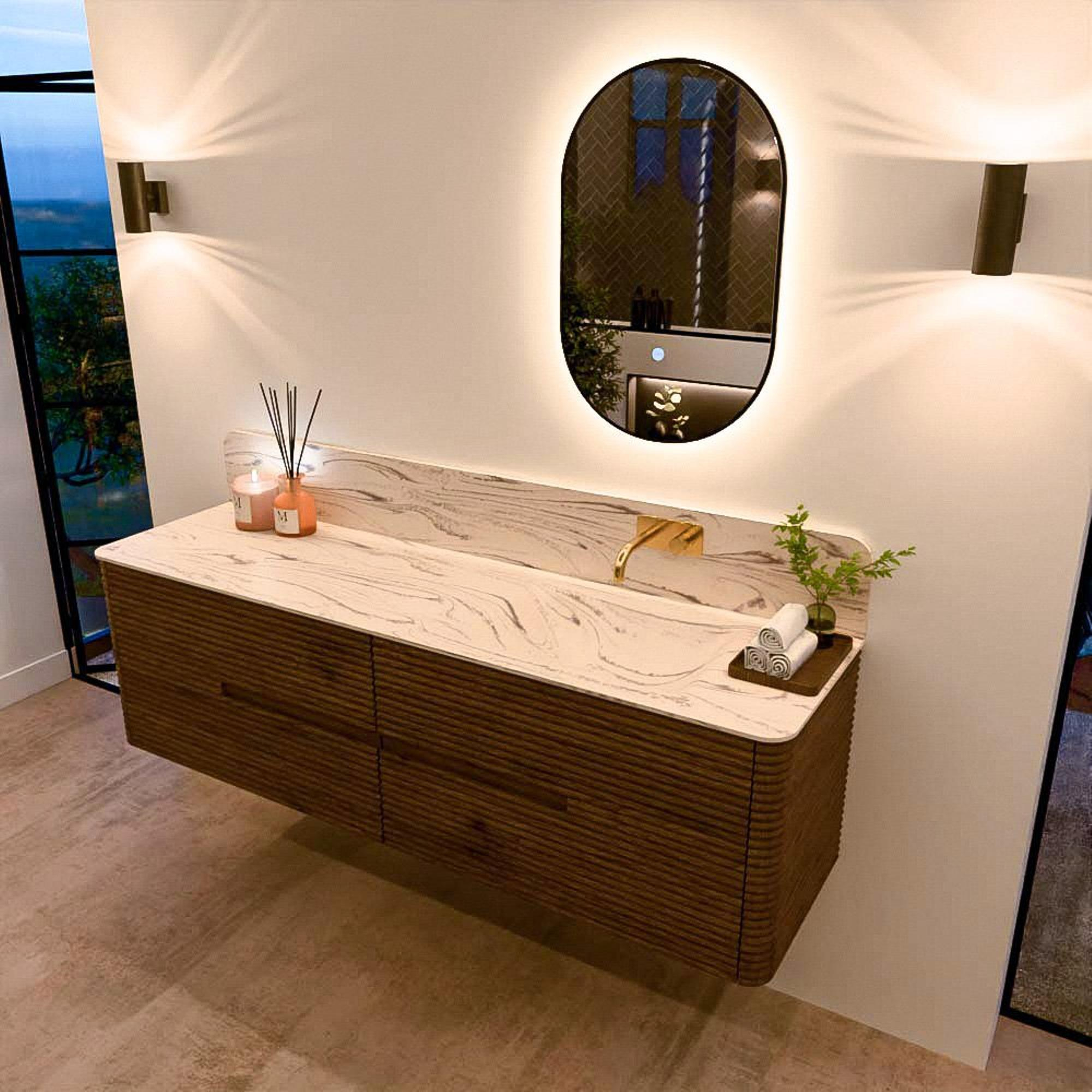 Het CIRO-DLUX badkamermeubel is ontwikkeld voor wie kiest voor modern design, natuurlijke materialen en hoogwaardige functionaliteit. Met maatvoeringen van 70 cm tot 190 cm past de CIRO-serie moeiteloos in zowel compacte badkamers als royale designruimtes. Elk meubel is een uitgebalanceerde combinatie van esthetiek, ambacht en duurzame kwaliteit.