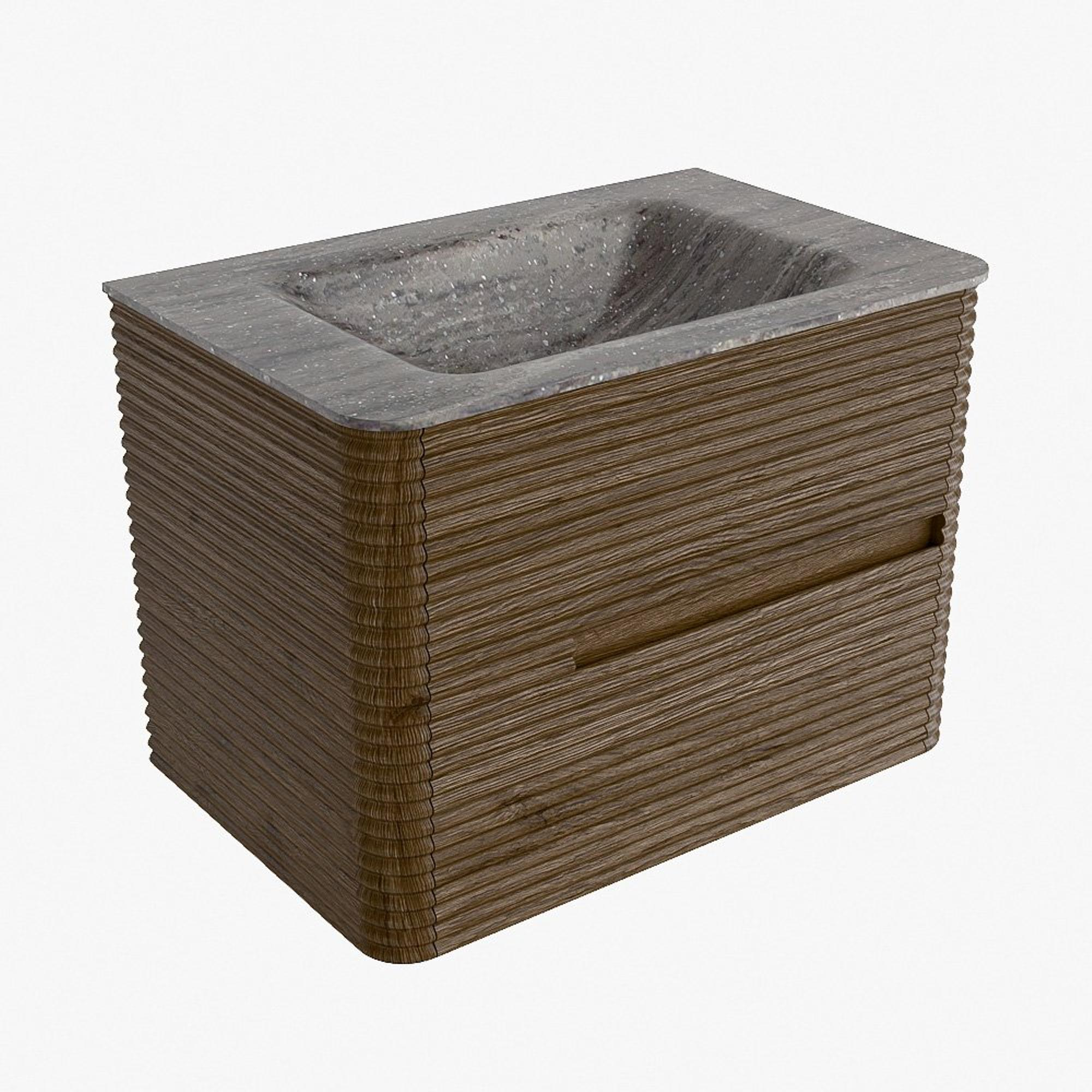 Mondiaz CIRO-DLUX Badkamermeubelset - 70x45x50cm - Solid surface wastafel Oza - 1 wasbak Midden - zonder kraangaten - 2 lades - Dusk