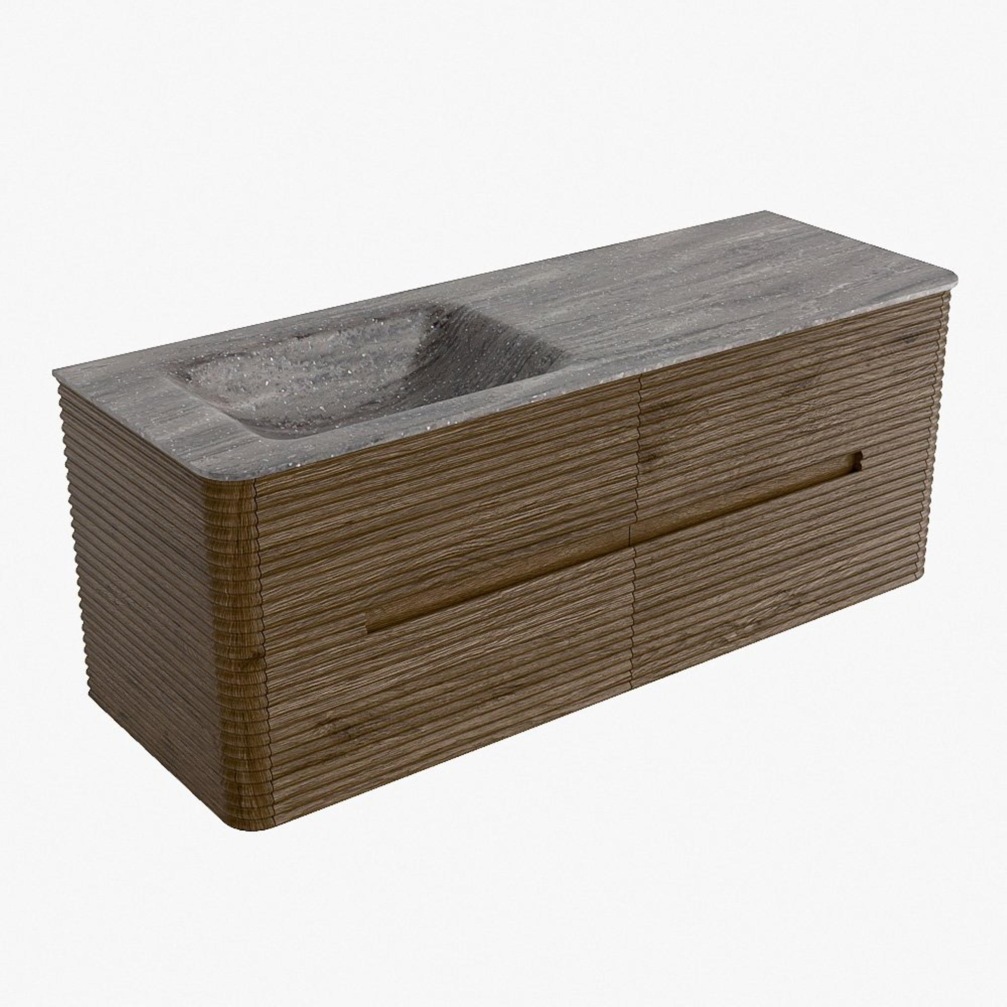 Mondiaz CIRO-DLUX Badkamermeubelset - 130x45x50cm - Solid surface wastafel Oza - 1 wasbak Links - 1 kraangat - 4 lades - Dusk