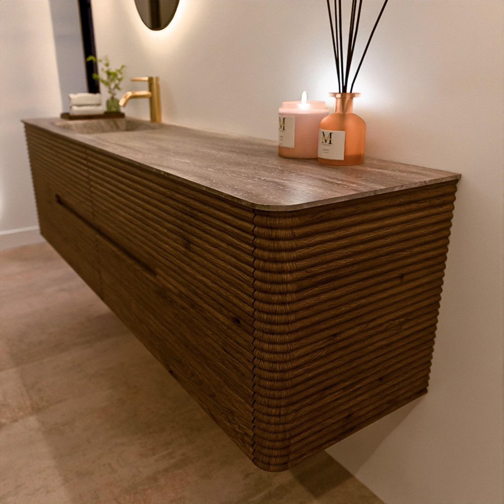 Het CIRO-DLUX badkamermeubel is ontwikkeld voor wie kiest voor modern design, natuurlijke materialen en hoogwaardige functionaliteit. Met maatvoeringen van 70 cm tot 190 cm past de CIRO-serie moeiteloos in zowel compacte badkamers als royale designruimtes. Elk meubel is een uitgebalanceerde combinatie van esthetiek, ambacht en duurzame kwaliteit.