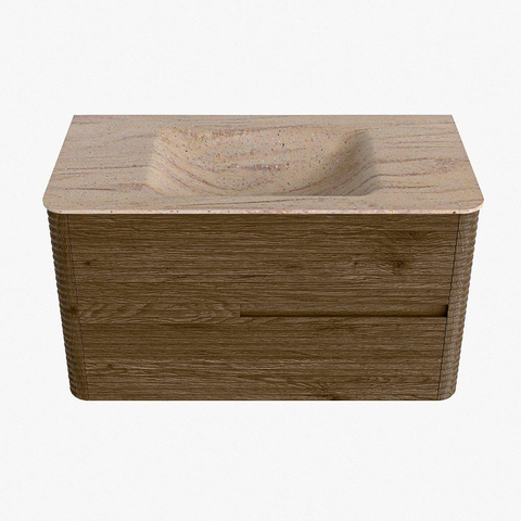 Mondiaz CIRO-DLUX Badkamermeubelset - 90x45x50cm - Solid surface wastafel Saba - 1 wasbak Midden - zonder kraangaten - 2 lades - Dusk