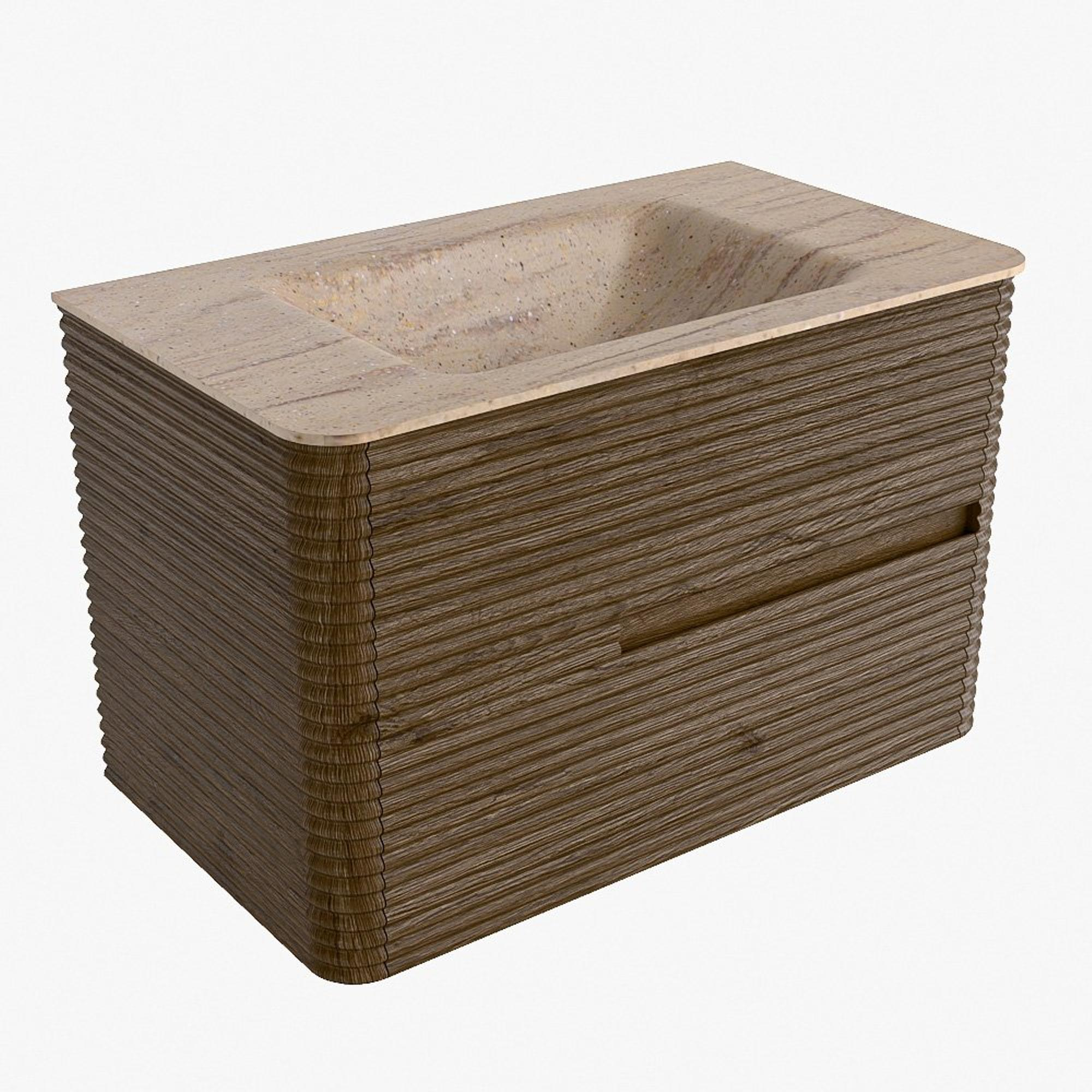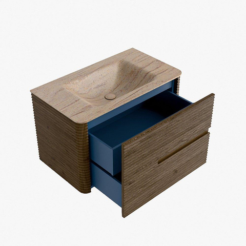 Mondiaz CIRO-DLUX Badkamermeubelset - 80x45x50cm - Solid surface wastafel Saba - 1 wasbak Midden - 1 kraangat - 2 lades - Dusk
