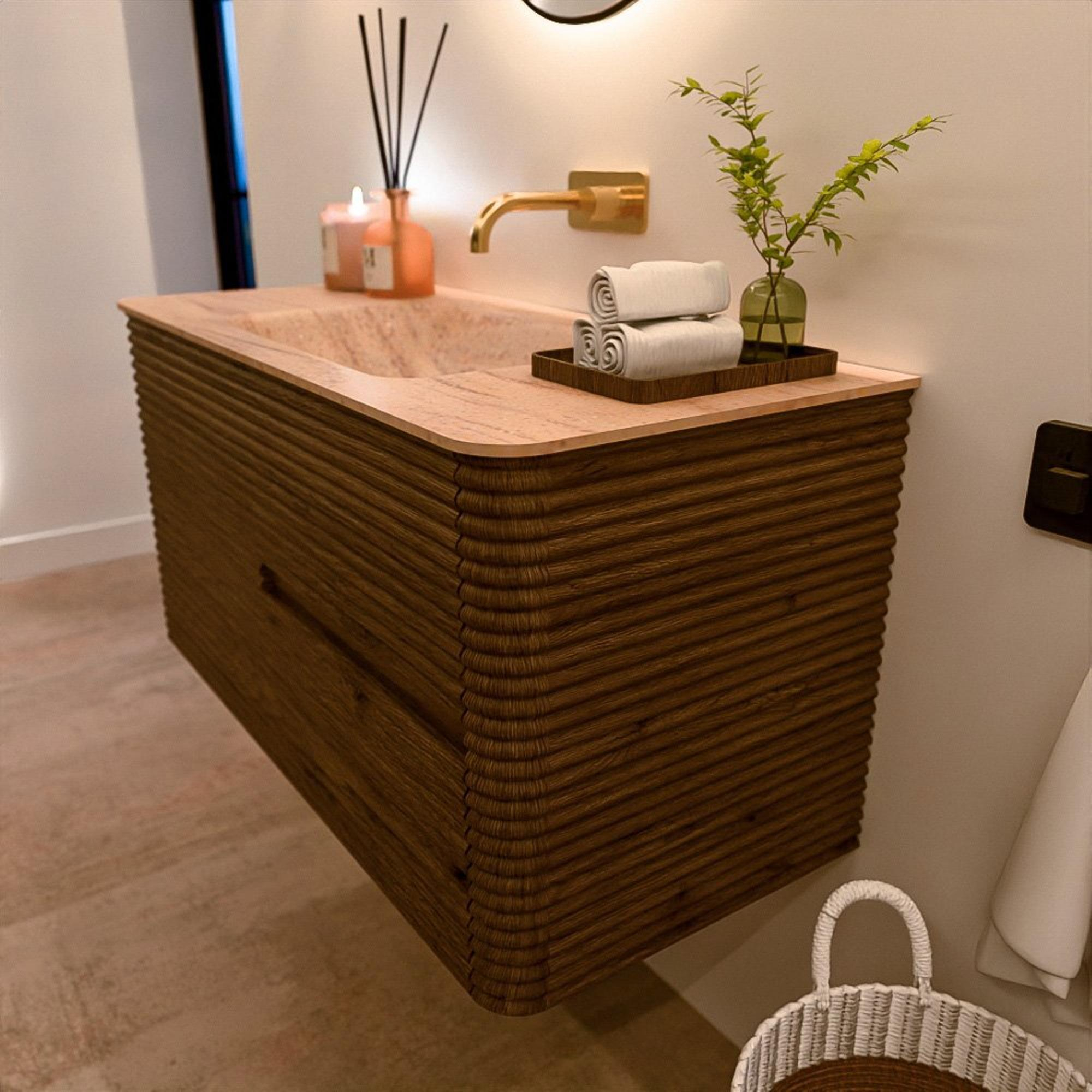 Het CIRO-DLUX badkamermeubel is ontwikkeld voor wie kiest voor modern design, natuurlijke materialen en hoogwaardige functionaliteit. Met maatvoeringen van 70 cm tot 190 cm past de CIRO-serie moeiteloos in zowel compacte badkamers als royale designruimtes. Elk meubel is een uitgebalanceerde combinatie van esthetiek, ambacht en duurzame kwaliteit.
