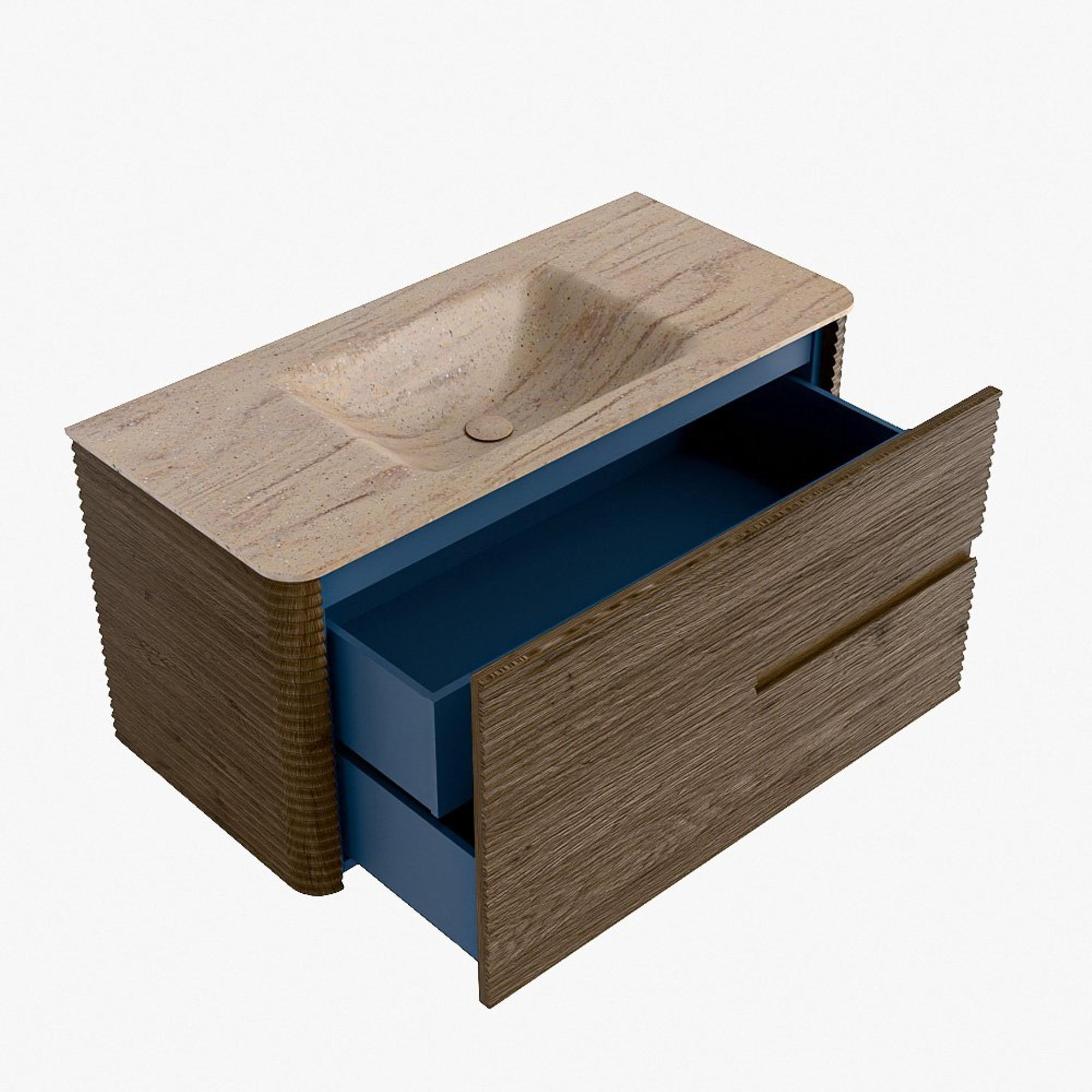 Mondiaz CIRO-DLUX Badkamermeubelset - 100x45x50cm - Solid surface wastafel Saba - 1 wasbak Midden - zonder kraangaten - 2 lades - Dusk