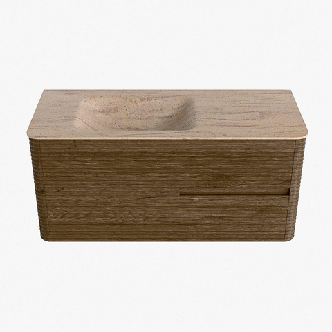 Mondiaz CIRO-DLUX Badkamermeubelset - 110x45x50cm - Solid surface wastafel Saba - 1 wasbak Links - zonder kraangaten - 2 lades - Dusk