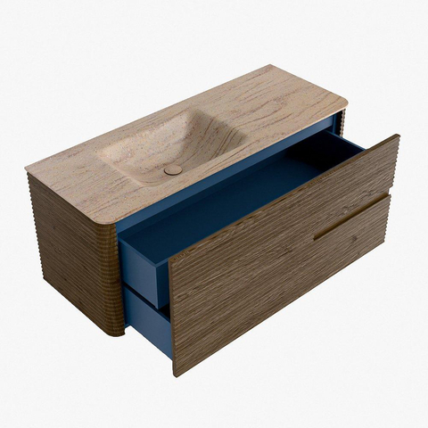 Mondiaz CIRO-DLUX Badkamermeubelset - 120x45x50cm - Solid surface wastafel Saba - 1 wasbak Links - zonder kraangaten - 2 lades - Dusk