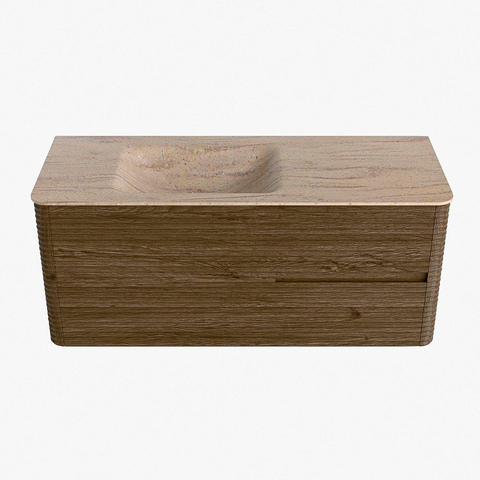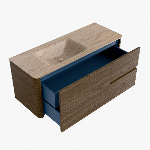 Mondiaz CIRO-DLUX Badkamermeubelset - 120x45x50cm - Solid surface wastafel Saba - 1 wasbak Links - 1 kraangat - 2 lades - Dusk