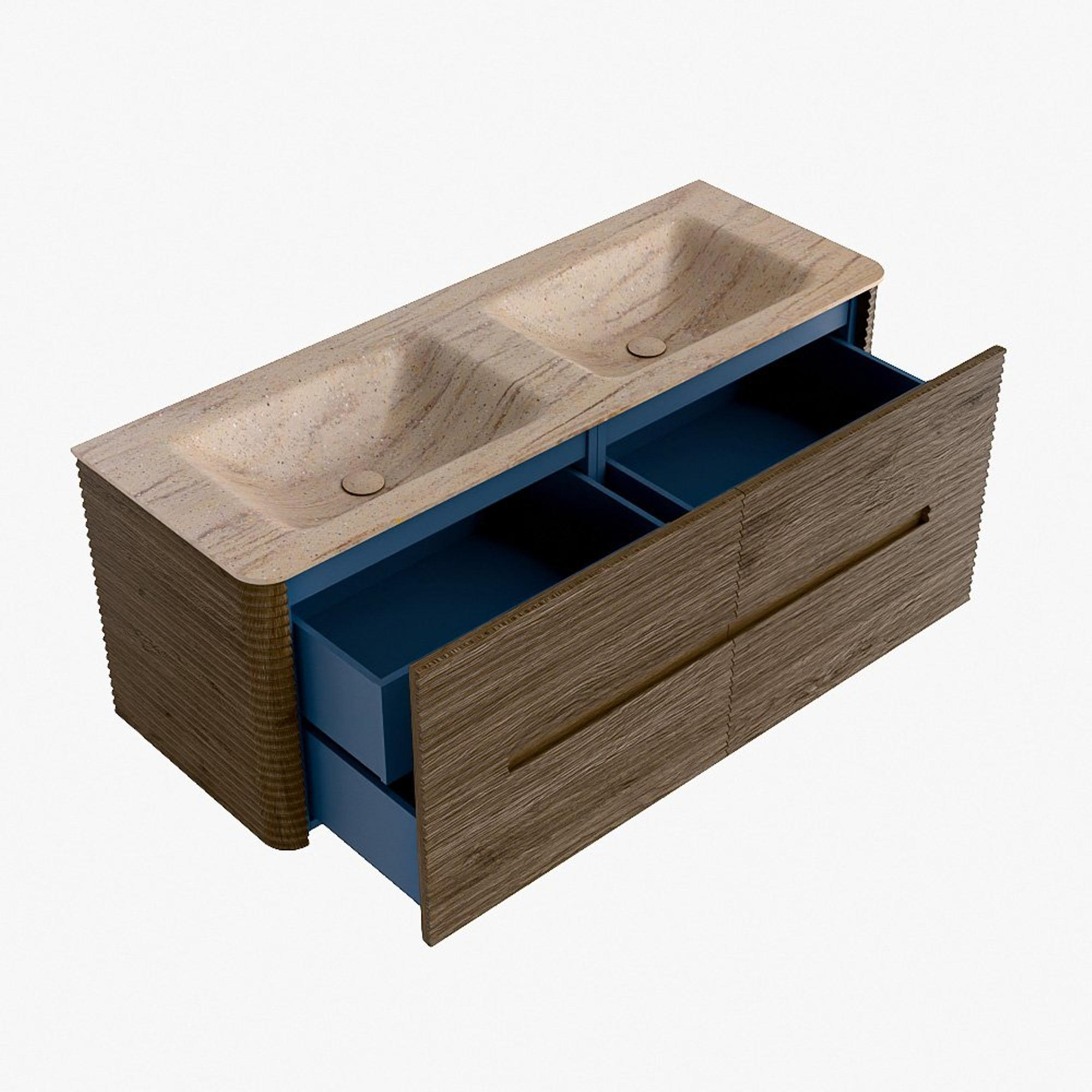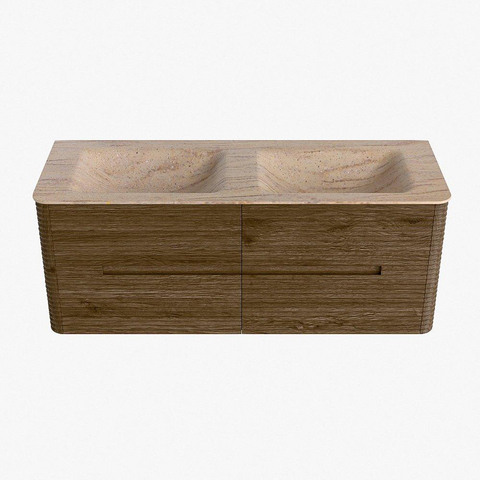 Mondiaz CIRO-DLUX Badkamermeubelset - 130x45x50cm - Solid surface wastafel Saba - 2 wasbak Dubbel - 2 kraangaten - 4 lades - Dusk