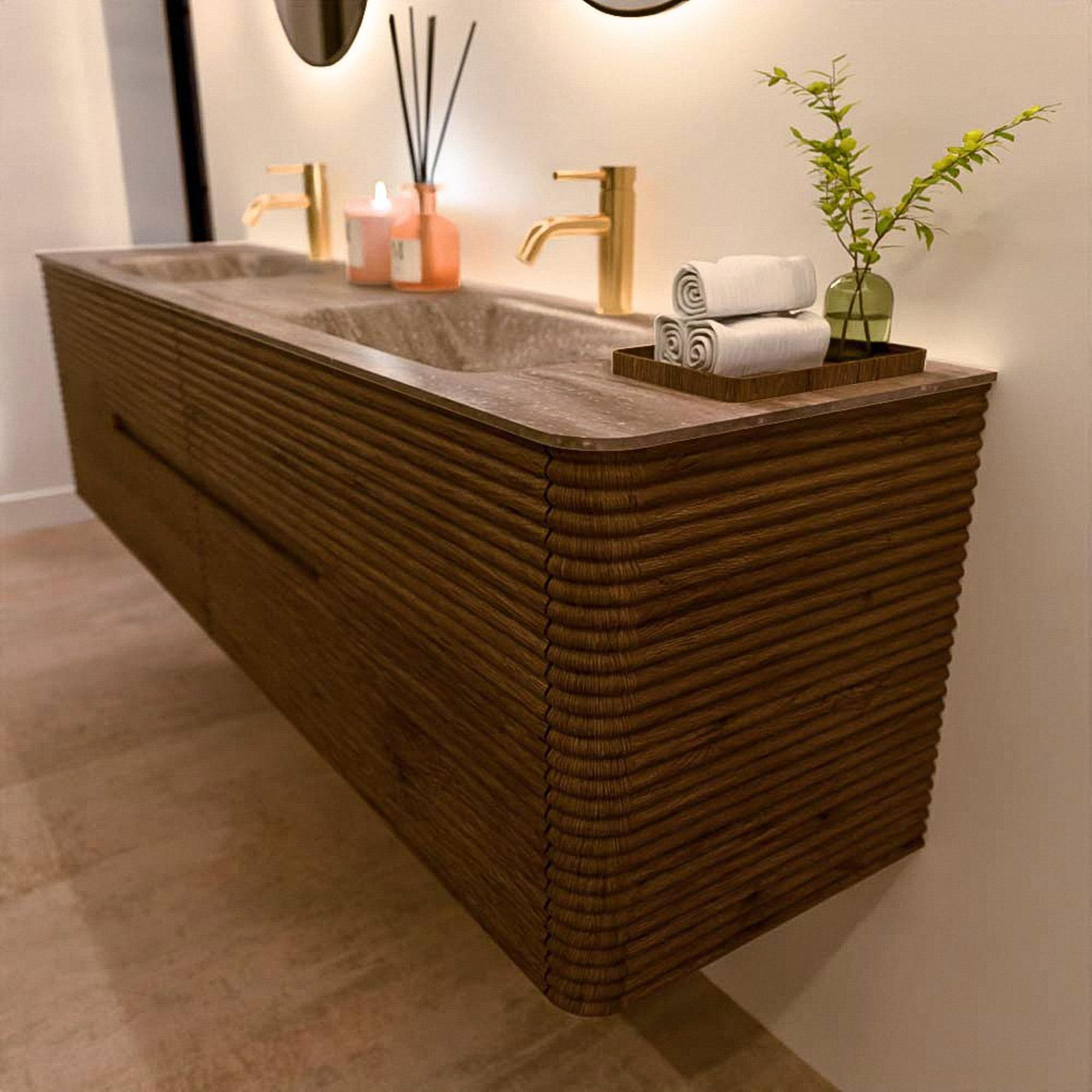 Het CIRO-DLUX badkamermeubel is ontwikkeld voor wie kiest voor modern design, natuurlijke materialen en hoogwaardige functionaliteit. Met maatvoeringen van 70 cm tot 190 cm past de CIRO-serie moeiteloos in zowel compacte badkamers als royale designruimtes. Elk meubel is een uitgebalanceerde combinatie van esthetiek, ambacht en duurzame kwaliteit.