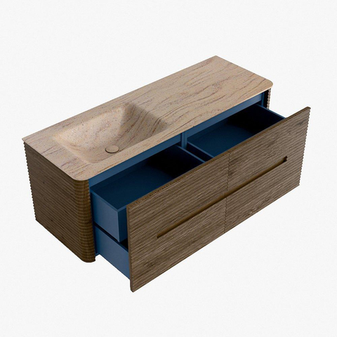 Mondiaz CIRO-DLUX Badkamermeubelset - 130x45x50cm - Solid surface wastafel Saba - 1 wasbak Links - zonder kraangaten - 4 lades - Dusk