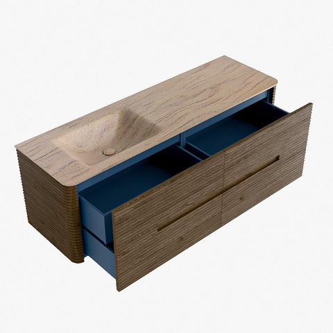Functioneel gemak is een essentieel onderdeel van de CIRO-serie. Het meubel beschikt over een royale lade met extra binnen lade, ideaal voor het overzichtelijk opbergen van alle dagelijkse badkamerartikelen. Dankzij de geïntegreerde greep en het soft close-mechanisme blijft het front rustig, strak en elegant.