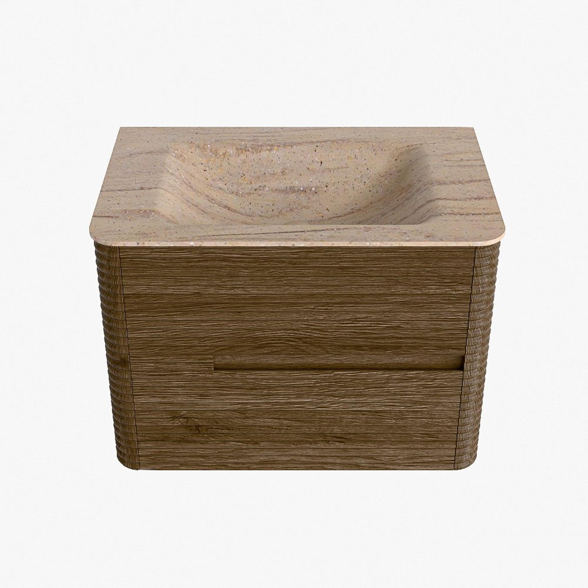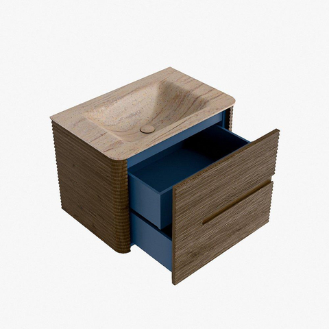 Mondiaz CIRO-DLUX Badkamermeubelset - 70x45x50cm - Solid surface wastafel Saba - 1 wasbak Midden - zonder kraangaten - 2 lades - Dusk