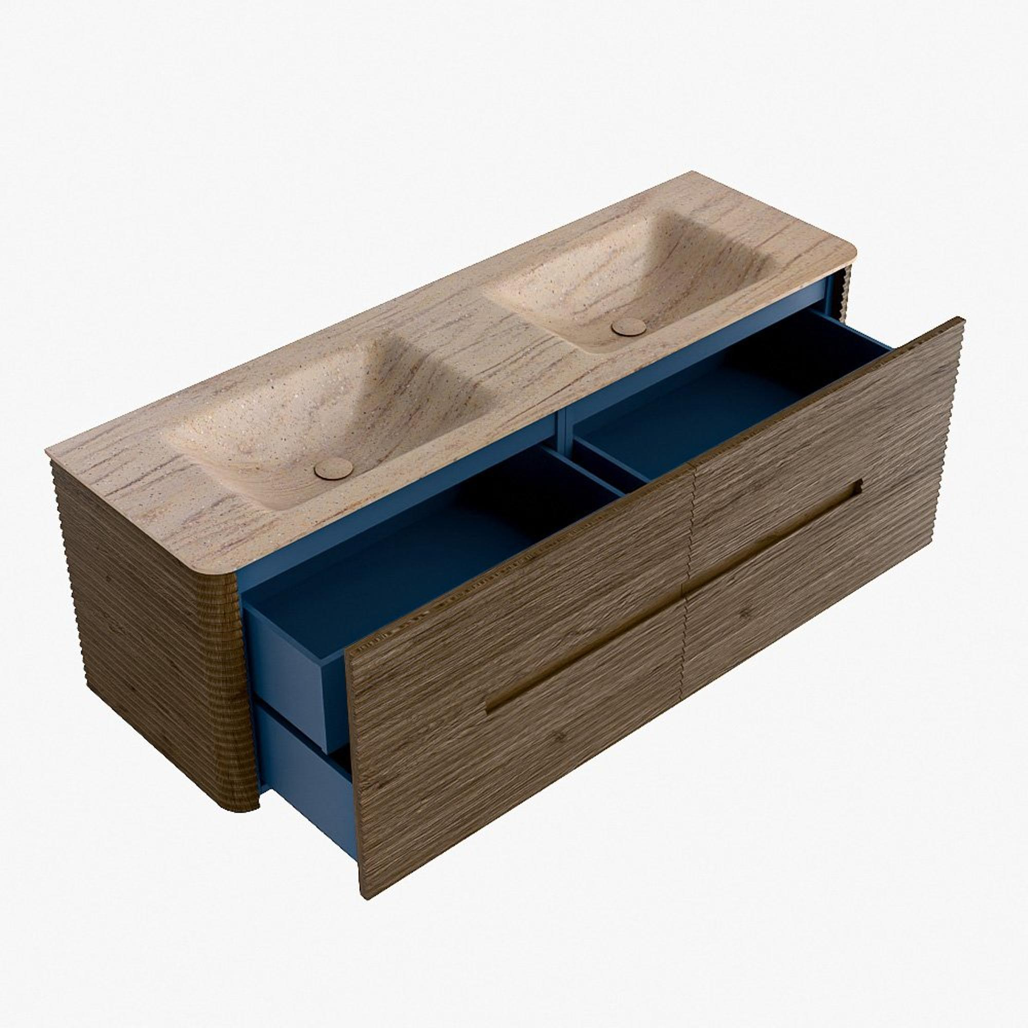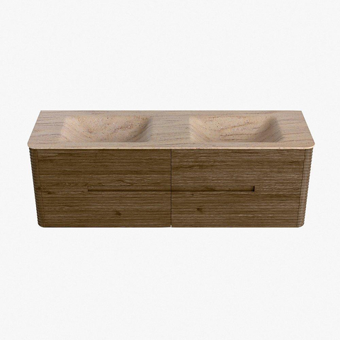 Mondiaz CIRO-DLUX Badkamermeubelset - 150x45x50cm - Solid surface wastafel Saba - 2 wasbak Dubbel - 2 kraangaten - 4 lades - Dusk