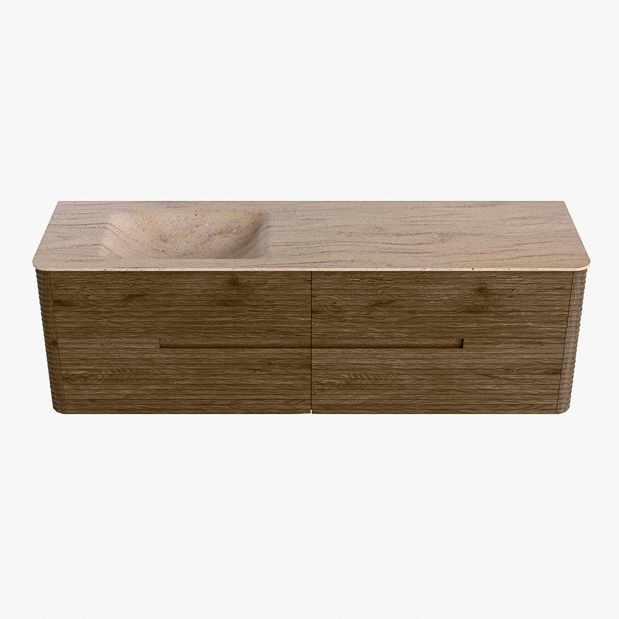 Mondiaz CIRO-DLUX Badkamermeubelset - 160x45x50cm - Solid surface wastafel Saba - 1 wasbak Links - 1 kraangat - 4 lades - Dusk