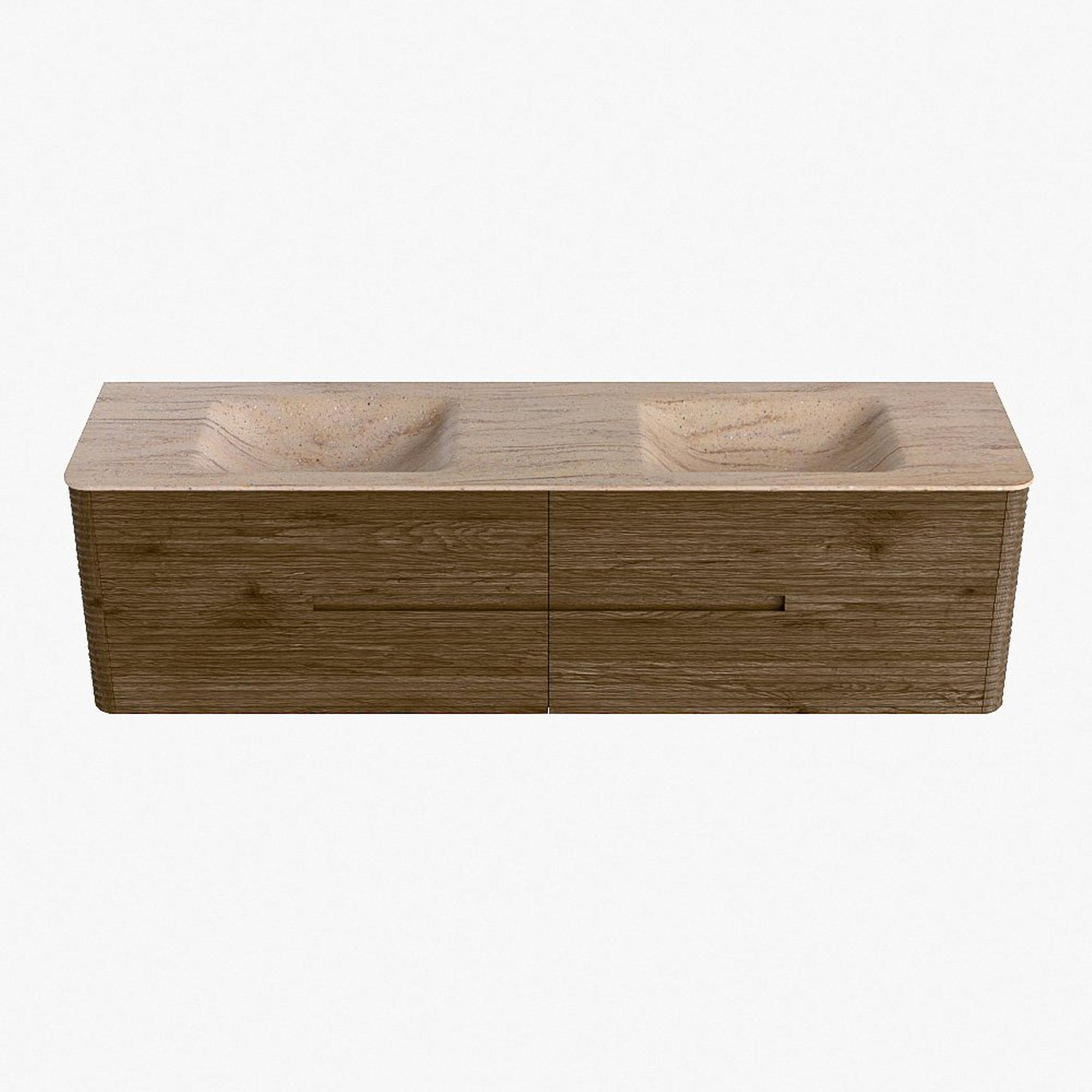 Mondiaz CIRO-DLUX Badkamermeubelset - 180x45x50cm - Solid surface wastafel Saba - 2 wasbak Dubbel - 2 kraangaten - 4 lades - Dusk