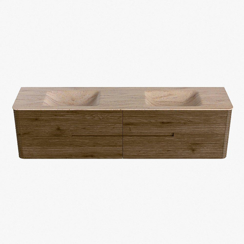 Mondiaz CIRO-DLUX Badkamermeubelset - 190x45x50cm - Solid surface wastafel Saba - 2 wasbak Dubbel - zonder kraangaten - 4 lades - Dusk