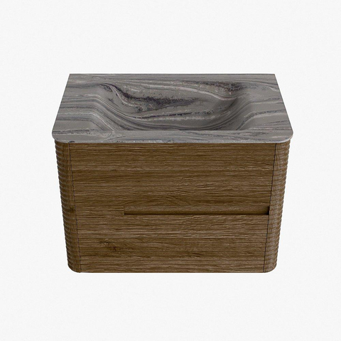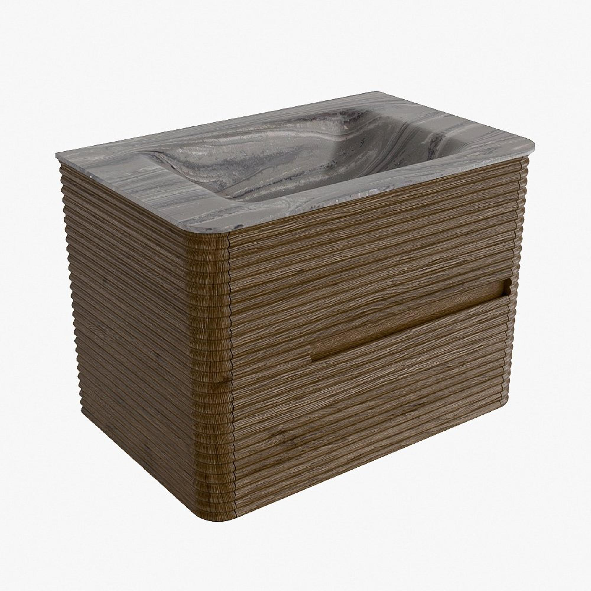 Mondiaz CIRO-DLUX Badkamermeubelset - 70x45x50cm - Solid surface wastafel Sombra - 1 wasbak Midden - 1 kraangat - 2 lades - Dusk
