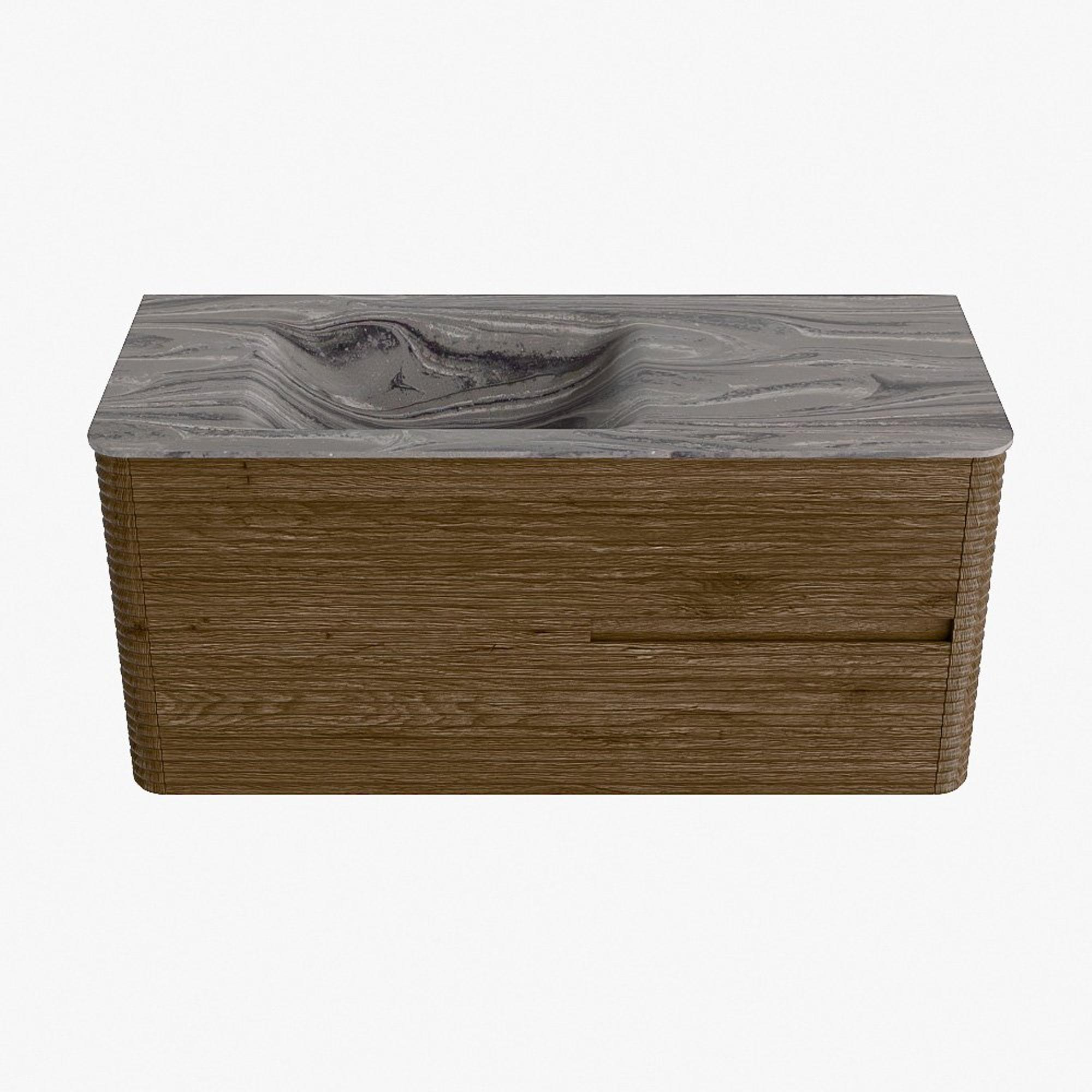 Mondiaz CIRO-DLUX Badkamermeubelset - 110x45x50cm - Solid surface wastafel Sombra - 1 wasbak Links - 1 kraangat - 2 lades - Dusk