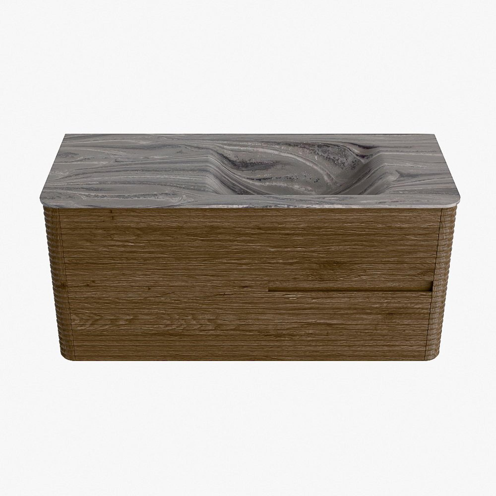 Mondiaz CIRO-DLUX Badkamermeubelset - 110x45x50cm - Solid surface wastafel Sombra - 1 wasbak Rechts - zonder kraangaten - 2 lades - Dusk