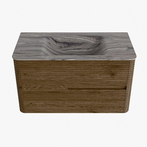 Mondiaz CIRO-DLUX Badkamermeubelset - 90x45x50cm - Solid surface wastafel Sombra - 1 wasbak Midden - zonder kraangaten - 2 lades - Dusk