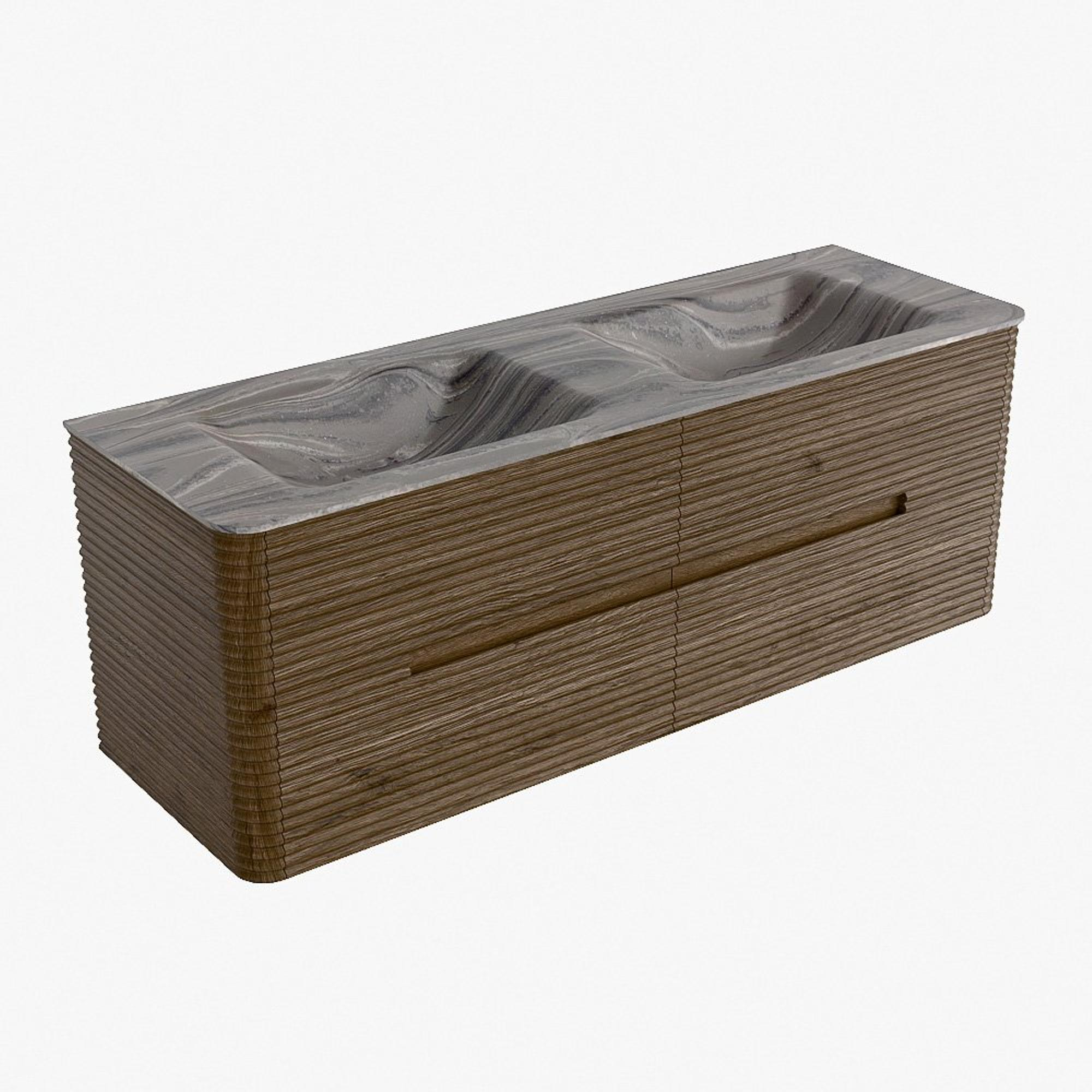 Mondiaz CIRO-DLUX Badkamermeubelset - 140x45x50cm - Solid surface wastafel Sombra - 2 wasbak Dubbel - 2 kraangaten - 4 lades - Dusk