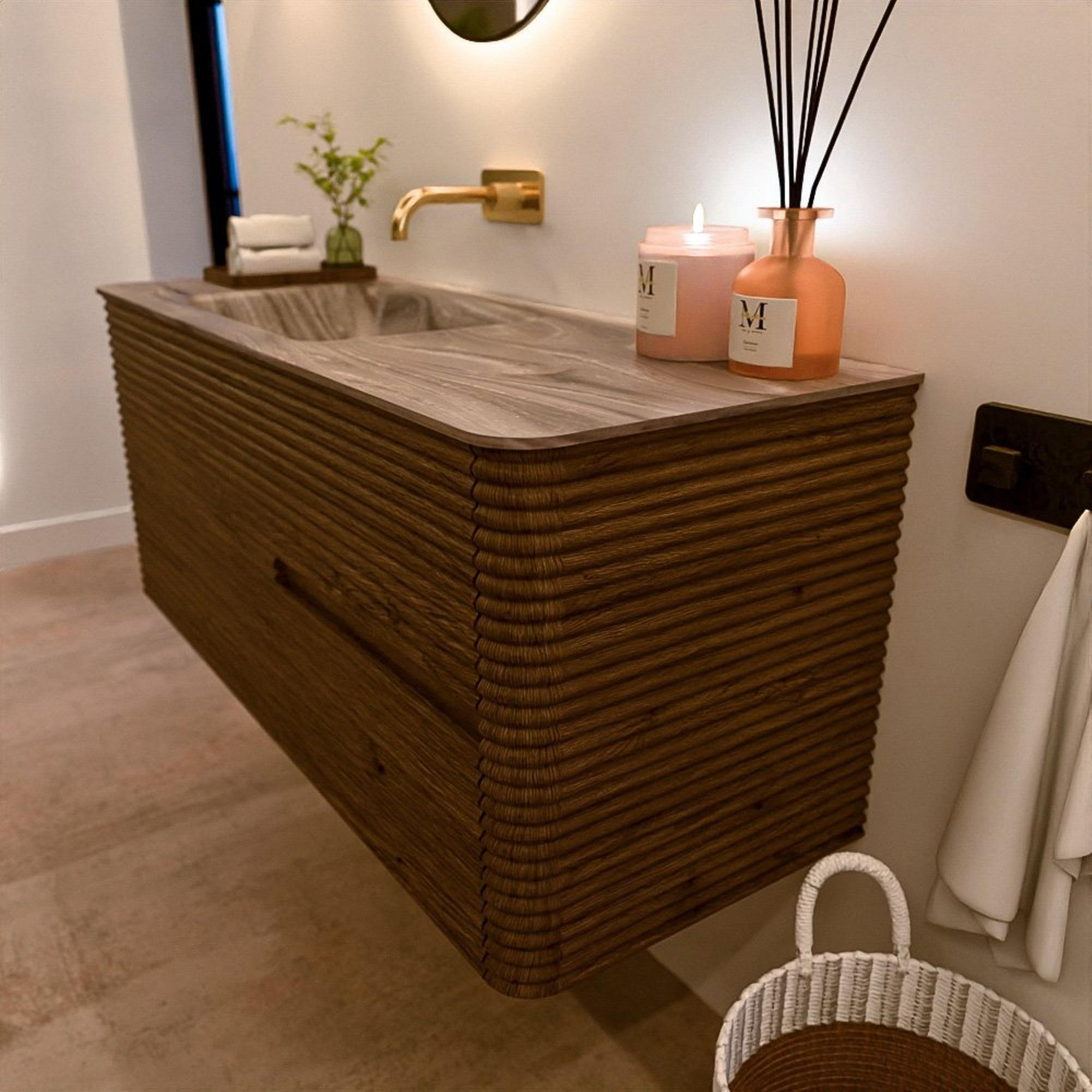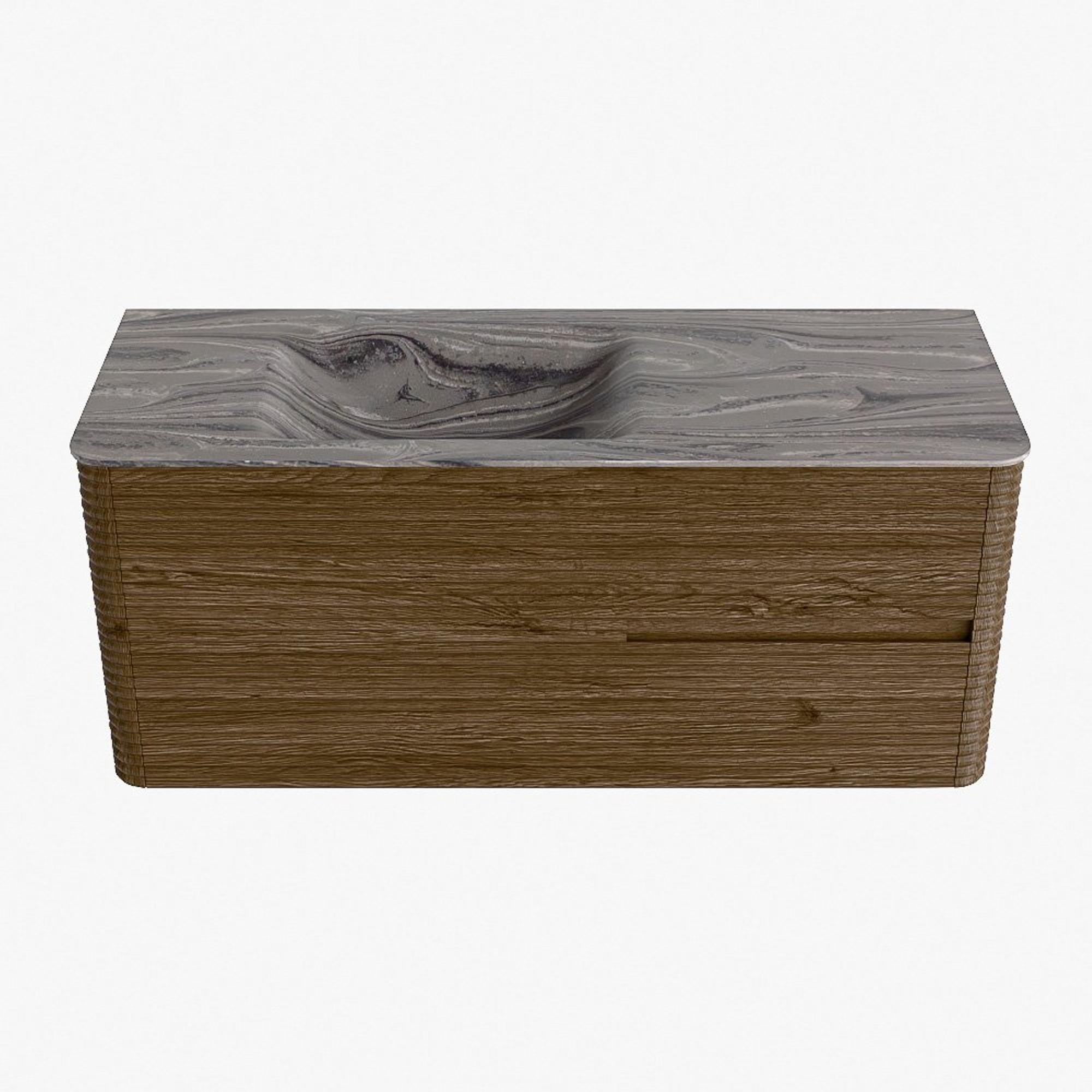 Mondiaz CIRO-DLUX Badkamermeubelset - 120x45x50cm - Solid surface wastafel Sombra - 1 wasbak Links - zonder kraangaten - 2 lades - Dusk