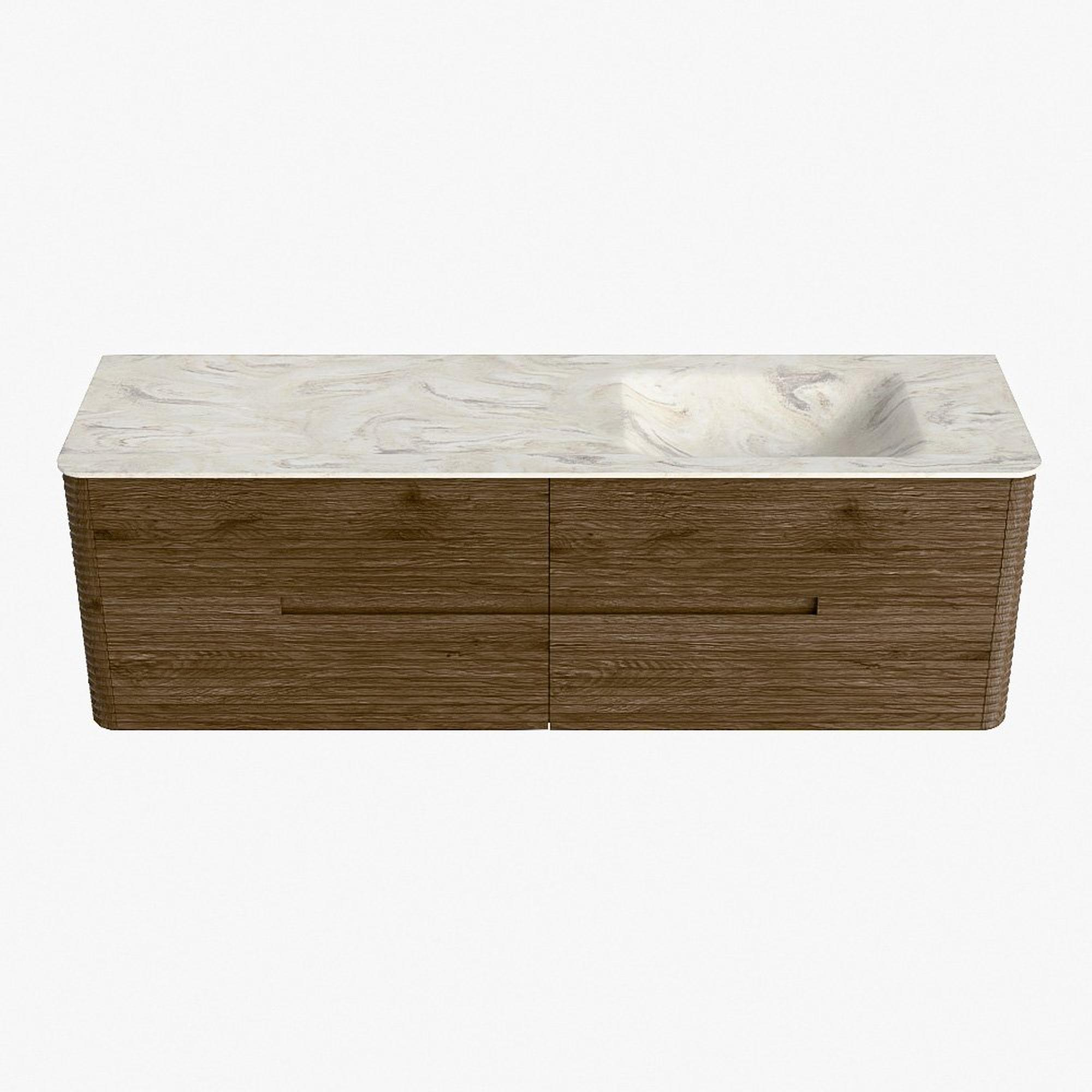 Mondiaz CIRO-DLUX Badkamermeubelset - 160x45x50cm - Solid surface wastafel Ostra - 1 wasbak Rechts - 1 kraangat - 4 lades - Dusk