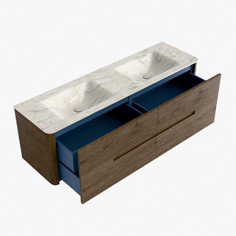 Mondiaz CIRO-DLUX Badkamermeubelset - 160x45x50cm - Solid surface wastafel Ostra - 2 wasbak Dubbel - zonder kraangaten - 4 lades - Dusk