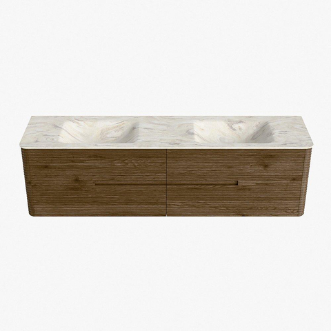 Mondiaz CIRO-DLUX Badkamermeubelset - 180x45x50cm - Solid surface wastafel Ostra - 2 wasbak Dubbel - zonder kraangaten - 4 lades - Dusk