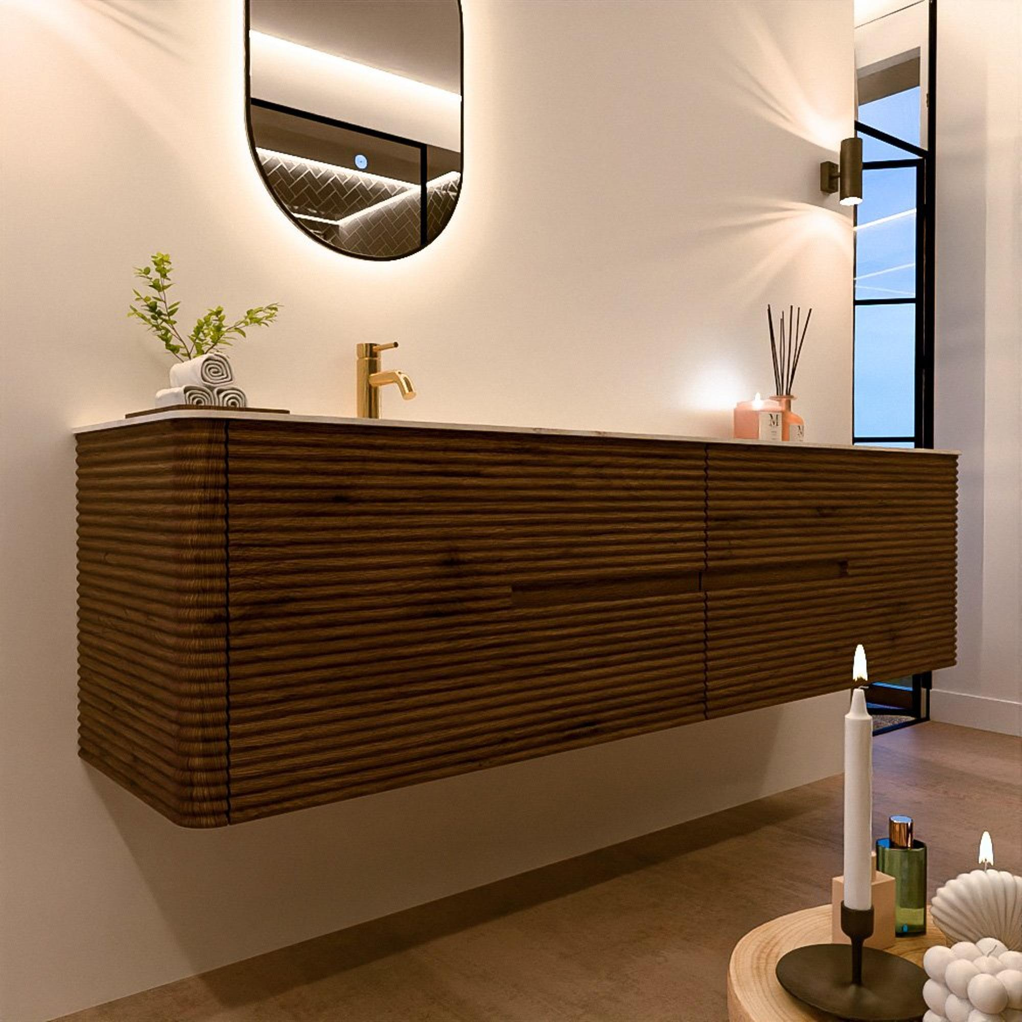 Het CIRO-DLUX badkamermeubel is ontwikkeld voor wie kiest voor modern design, natuurlijke materialen en hoogwaardige functionaliteit. Met maatvoeringen van 70 cm tot 190 cm past de CIRO-serie moeiteloos in zowel compacte badkamers als royale designruimtes. Elk meubel is een uitgebalanceerde combinatie van esthetiek, ambacht en duurzame kwaliteit.