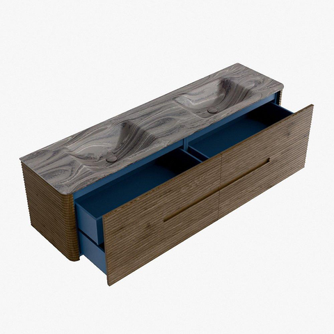 Functioneel gemak is een essentieel onderdeel van de CIRO-serie. Het meubel beschikt over een royale lade met extra binnen lade, ideaal voor het overzichtelijk opbergen van alle dagelijkse badkamerartikelen. Dankzij de geïntegreerde greep en het soft close-mechanisme blijft het front rustig, strak en elegant.