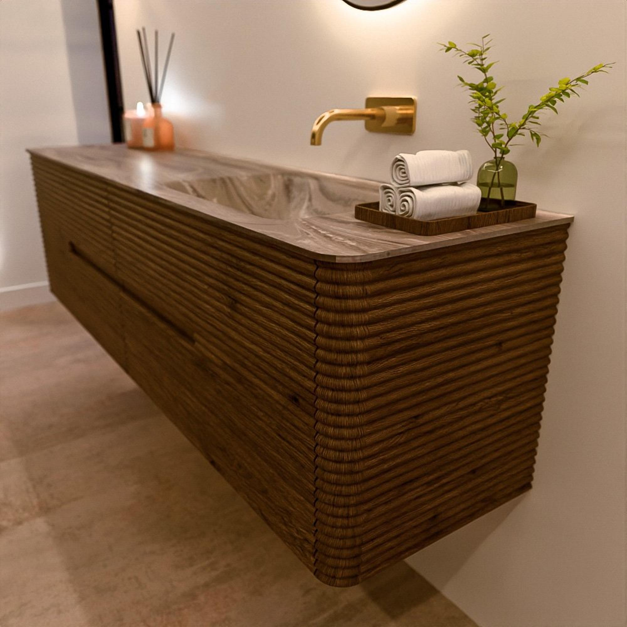 Het CIRO-DLUX badkamermeubel is ontwikkeld voor wie kiest voor modern design, natuurlijke materialen en hoogwaardige functionaliteit. Met maatvoeringen van 70 cm tot 190 cm past de CIRO-serie moeiteloos in zowel compacte badkamers als royale designruimtes. Elk meubel is een uitgebalanceerde combinatie van esthetiek, ambacht en duurzame kwaliteit.