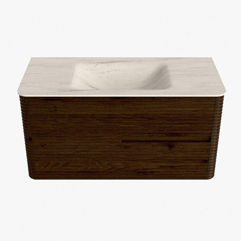 Mondiaz CIRO-DLUX Badkamermeubelset - 100x45x50cm - Solid surface wastafel Meli - 1 wasbak Midden - 1 kraangat - 2 lades - Walnut