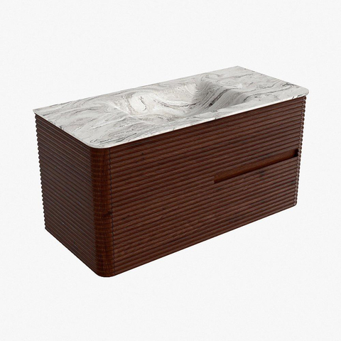 Mondiaz CIRO-DLUX Badkamermeubelset - 100x45x50cm - Solid surface wastafel Glace - 1 wasbak Midden - zonder kraangaten - 2 lades - Ruby