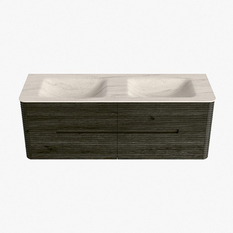 Mondiaz CIRO-DLUX Badkamermeubelset - 140x45x50cm - Solid surface wastafel Meli - 2 wasbak Dubbel - zonder kraangaten - 4 lades - Shadow