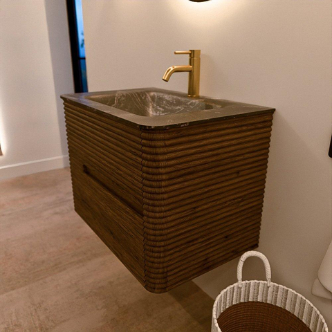 Mondiaz CIRO-DLUX Badkamermeubelset - 70x45x50cm - Solid surface wastafel Lava - 1 wasbak Midden - 1 kraangat - 2 lades - Dusk